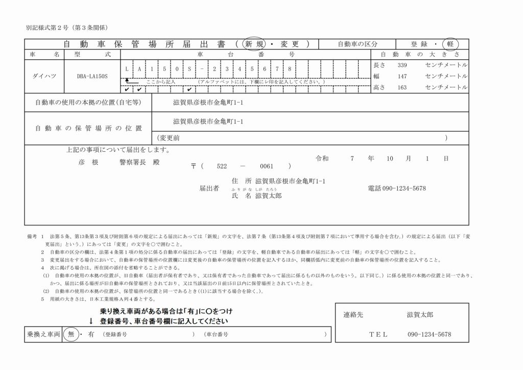 また、東近江警察署、長浜警察署、米原警察署管内においても、軽自動車の車庫届出の義務はありません。